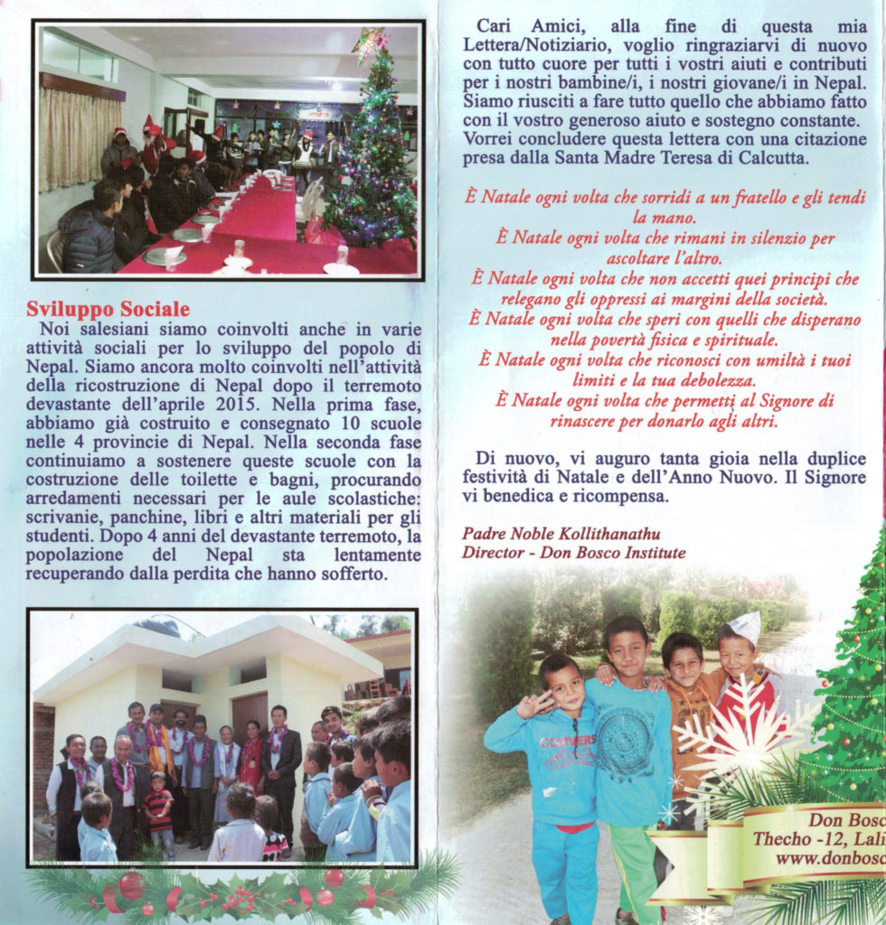 Ringrazio tutti voi che, con qualche sacrificio, avete continuato a sostenere le necessità dei bambini nepalesi e indiani, grazie ai generosi amici che con le offerte contribuiscono alle necessità delle due comunità.