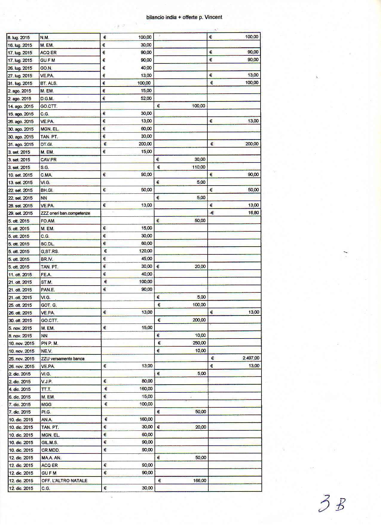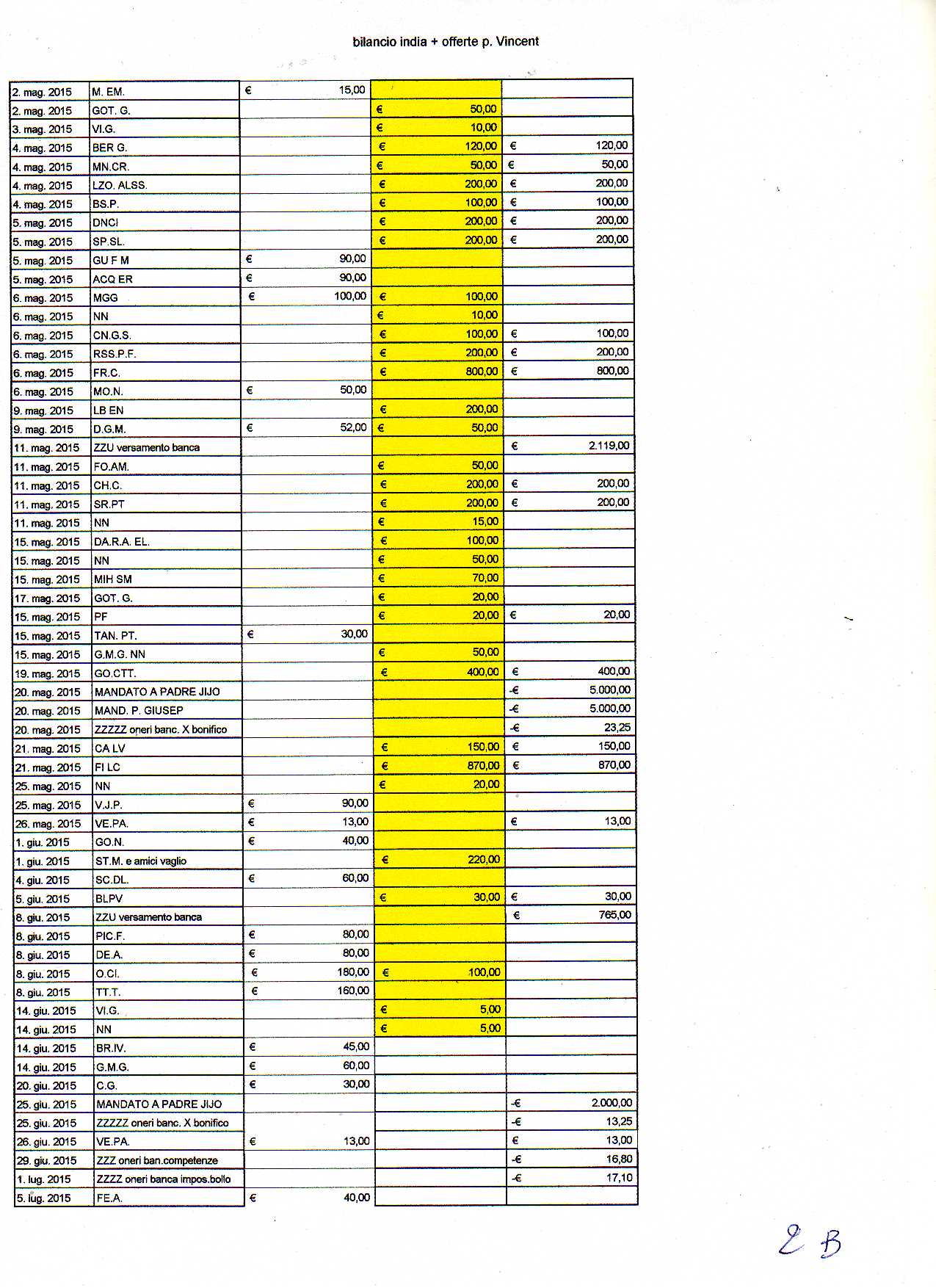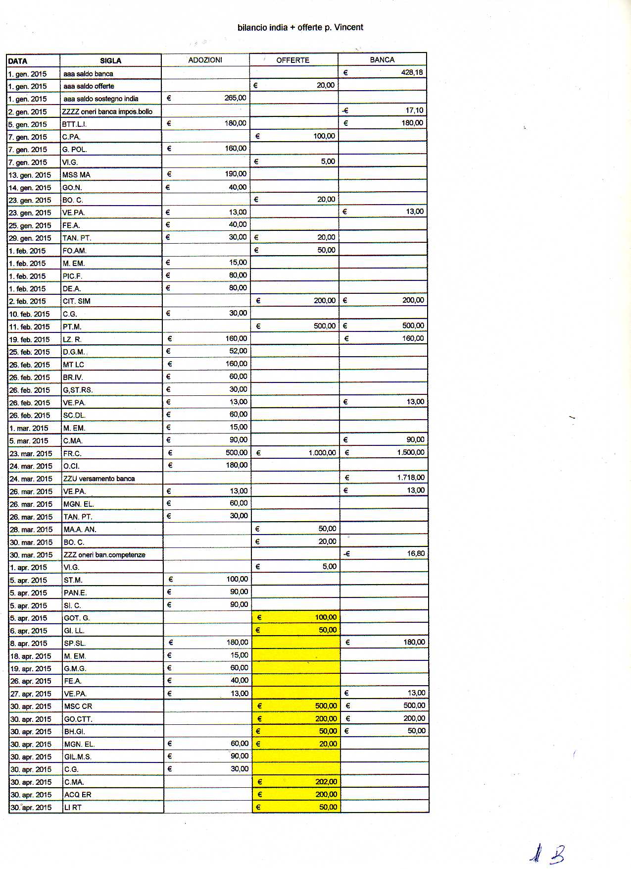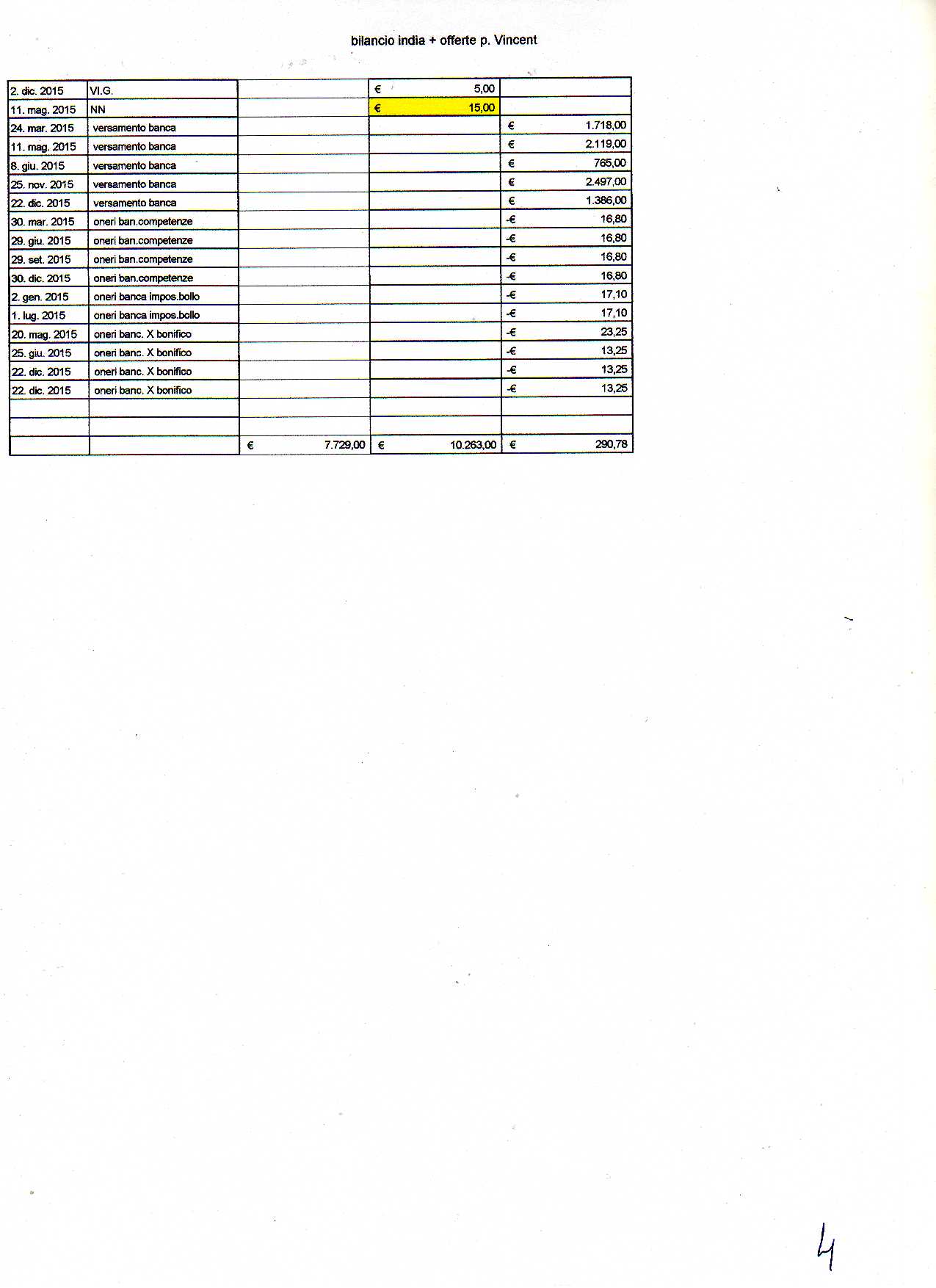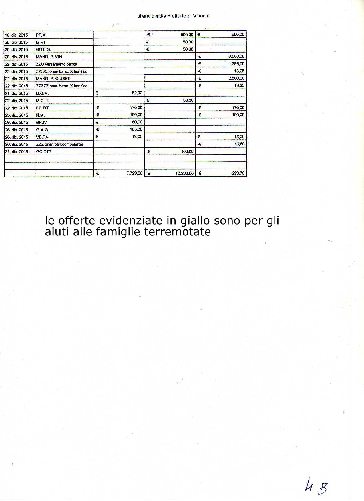 27 Gennaio 2016 Bilancio India 2015 Di seguito il bilancio per la missione di Berhampore del 2015 inziando dal consuntivo e proseguendo con il dettaglio.